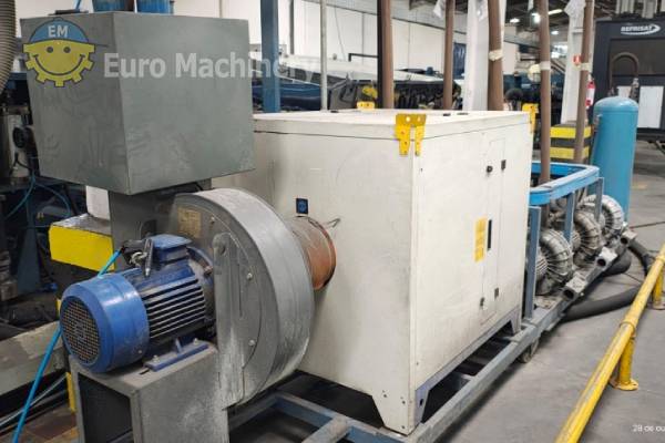 Ekstruderingslinje til PP-hulplader fra BAUSANO (MD 158/30) designet til at producere plader op til 2.200 mm brede og 2-6 mm tykke (op til 10 mm med værktøjsskift), med en kapacitet på 800 kg/t. Inkluderer ekstruder med to skruer, flad matrice, hydraulisk skærmskifter, tandhjulspumpe, kalibreringsbord, udtrækningsenheder, ovn, koronabehandling, køling, trimning, skæreenheder og vakuumsystem. Mærke og model: BAUSANO MD 158/30 Arkets bredde: Maks. 2.200 mm Materialer, der skal behandles: PP Materialetykkelse: Min 2 mm – Max 6 mm (forberedt på at komme op på 10 mm med en matriceændring) Produktion: PP-hulplader op til 800 kg/hora i 1000 gsm Ekstrudere: BAUSANO dobbeltskrue-ekstruder MD 158/30 Flad matrice: 2.200 mm bred Tilbehør:- Tørrebeholder af stål
