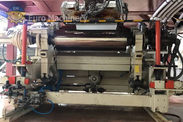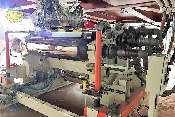 ER WE PA Sheet co-ekstruderingslinje er et aseptisk ekstruderingsbelægningssystem til behandling af PP, EVOH, i stand til at behandle arkbredde fra 300 mm til 900 mm med en tykkelse fra 400 mikron til 2 mm Brand: ER WE PA Pladebredde min-max: 300mm -900mm Materialer: PP, EVOH Min. og maks. materialetykkelse: 400 mikrometer til 2 mm Doseringssystem: Enkeltkomponent Antal ekstrudere: 4 Skærmskifter: ja Smeltepumpe eller tandhjulspumpe: Smeltepumpe Indføringsblok: 7 lag 2 sæt, den kan køre 3-5-7 lag Stempelhoved: 2 sæt 1-1000mm 2-400mm Kalanderens diameter: 500 mm x 3 Antal ruller: 3 Rulleposition: Enhver mulig position Køling: 2 sæt Type opruller: 2 stk. enkelt sæt Sheet co ekstruder i god stand og kan ses i produktion. Kontakt os venligst for mere information eller for at planlægge en inspektion.Hvordan finder jeg prisen på denne maskine?