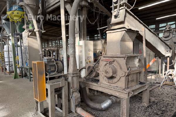 Hosokawa Alpine-knuser og vaskelinje til behandling af PE, PP, PVC og elektrisk affald med en kapacitet på op til 600 kg/t. Vaskelinje- Mærke og model: