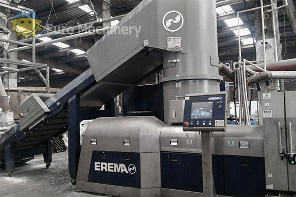 INTAREMA 1007TVE repelleteringslinje til behandling af LDPE, LLDPE, PP, PS, genbrugslinje med dobbelt afgasning, fuldautomatisk bachflush dobbelt friteringsskifter, varm granulering på dyse og output op til 400 kg/t. Mærke og model: INTAREMA 1007 TVE HG 4s/104RTF Materiale, der kan bearbejdes: LDPE, LLDPE, PP, PS Skruediameter: 70 mm Produktion: Op til 400 kg/t, afhængigt af materialetype og indføringshastighed. Afgasning: Dobbelt afgasning Skærmskifter før afgasning: Fuldautomatisk backflush-dobbeltfiltrering System til tilførsel af materiale: Transportbånd med metaldetektor Ekstruder tragt type: Agglomerator/Cutter Compactor – Ekstruder-/Skærerkombination Ekstruderingssystem: Varmgranulering på matrice – Vandcirkelsystem Strøm: Spænding: 3 x 400V + N + Pe Redskaber og tilbehør:- Vandbad
