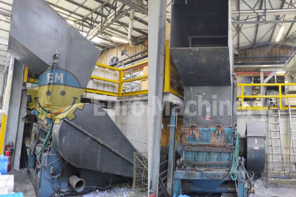 Vi præsenterer en brugt plastgranulator med 1000 mm rotor til salg. Til halvfabrikatfri og effektiv plastgenbrug på op til 1000 kg/t. Maskinen er i god stand. Mærke og model: Meccano Plastica 1000 G Rotor: Bredde 1000 mm Størrelse på motortype: 160 kW Skærmstørrelse: 14 mm huller Produktion: Op til 1000 kg/t afhængigt af materialetype, blæser og indføringshastighed. Indløb til tragt: 1000 x 1000 mm Materiale, der kan bearbejdes: Plast Skærehus:- 3 stk rotorknive