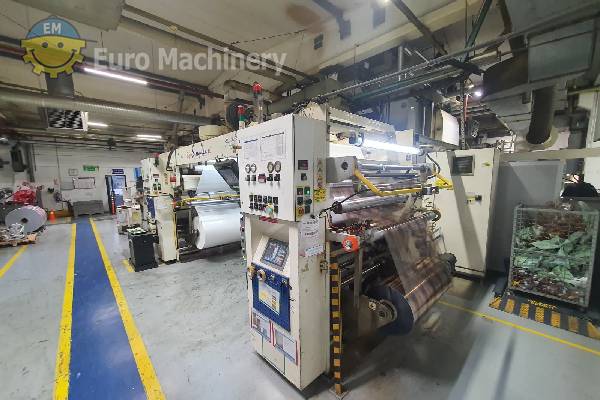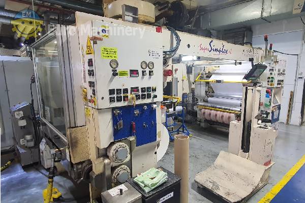 Nordmeccanica Simplex lamineringsmaskine til fleksibel emballage, film/film- og film/folielaminering. Laminator med to-komponent klæbemiddel uden opløsningsmidler, arbejdsbredde 1315 mm. Mærke og model: Nord Meccanica S.SIMPLEX SL 1300 Klæbesystem: To-komponent lim uden opløsningsmidler Materiale: BOPP, PET, CPP, LDPE, LLDPE, OPA, nylon, aluminiumsfolie, Papir Anvendelser: Fleksibel emballage, film/film og film/folielaminering Maks. banebredde: 1300 – 1330 mm Arbejdsbredde: Ca. 1315 Min. banebredde: 600 – 650 mm Maksimal hastighed: 350 (op til 450 afhængigt af konfiguration) m/min Afvikler: Akselløs Spolemaskine: Akselløs Maksimal rullediameter: Op til 1000 mm Maksimal rullevægt: 600 – 1000 kg Drevsystem: AC-vektordrev / servomotorer Spændingskontrol: Uafhængig digital spændingskontrol Overfladebehandlingssystem: Dybtryk / glat rullelakering Tilbehør:- Corona-behandler