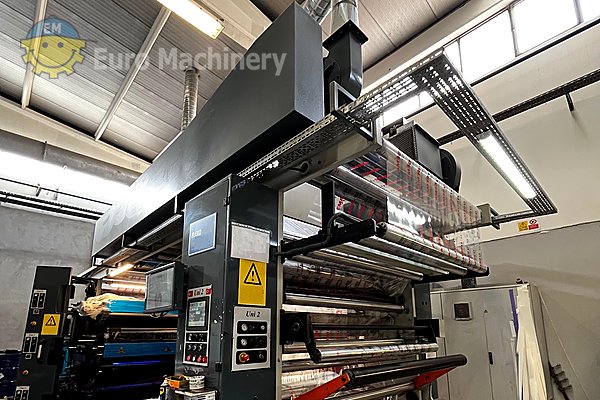 Boost din produktionslinje med denne brugte 6-farvede CI-flexopresse – 1600 mm printbredde, 300 m/min – klar til at printe PE, PP, OPP, PET og papir. Inkluderer motoriseret register, BST-videosystem, doctor-blade-kamre og meget mere.