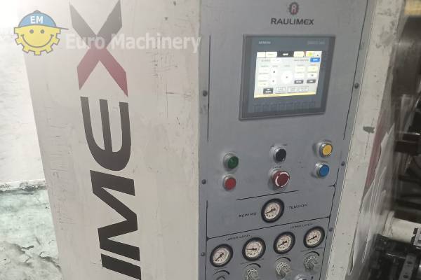 Raulimex er en knivskæreopruller med 8 skæreknive, der kan skære fra 50 til 1300 mm Mærke og model: Raulimex 2 Materiale til at skære: LDPE/LLDPE/BOPP/ Skæretype (barberkniv/roterende): Barberkniv Antal skæreknive: 8 Spaltebredde: 50-1300 mm Unwinder:- Type afvikler: Hydraulisk