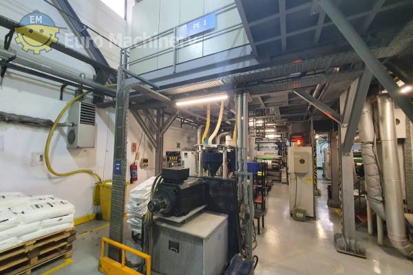 Reifenhäuser Kirion Monolayer-ekstruderingslinje, der kan behandle PE. Monolagsekstruder udstyret med en skruediameter på 100 mm og et aftræk på 1600 mm i bredden. Type: REIFENHÄUSER KIRION Materialer, der skal behandles: PE Type: Mono-lag ekstruder Skruediameter: 100 mm Start:- Take off 1600 mm bred