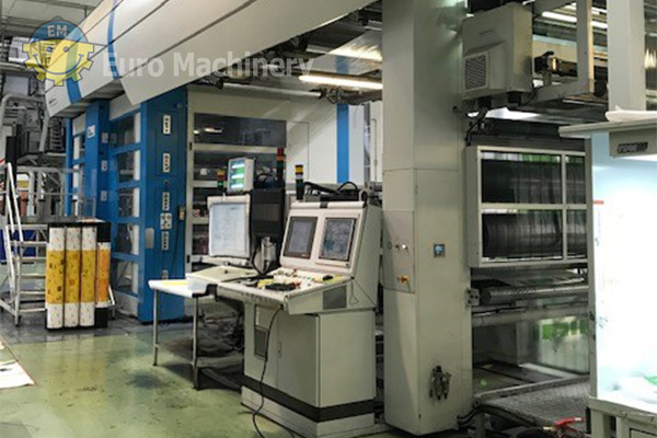 Professionel 10-farvet flexotrykpresse med 1500 mm trykbredde og hastigheder på op til 600 m/min. Udstyret med automatisk revolverafviklings-/oprulningssystem og avanceret trykstyring, herunder automatisk register- og viskositetsstyring. Ideel til PE-, PP-, OPP-, PET- og papirsubstrater.
