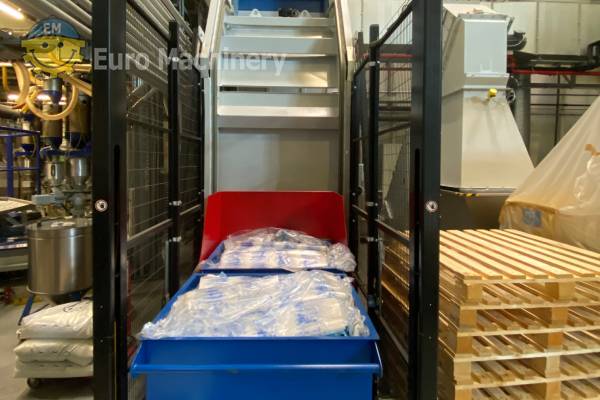 VECOPLAN VIZ shredder med én aksel er udviklet til anvendelse i forbindelse med forarbejdning af en lang række plastmaterialer med en høj grad af fleksibilitet i udstyret. Enakslet shredder med skubber, der kan behandle en række forskellige materialer med en kapacitet på op til 800 kg/t. Mærke og model: Vecoplan VIZ 1300 S Type: En aksel med skubber Rotor: Længde 1245 mm x diam. 495 mm Skærehus: 87 stk. rotorknive, 40x40mm Motortype og -størrelse: 90 kW Skærmstørrelse: 40 mm hul Produktion: Op til 800 kg/t afhængigt af materialetype, blæser og indføringshastighed. Indløb til tragt: 1255 mm X 1255 mm Materiale, der kan bearbejdes: PE-film, papiraffald, tekstiler og non-woven, opstartsklumper, hård plast, fibre, hule beholdere. Redskaber og tilbehør:- Indlæsningsanordning