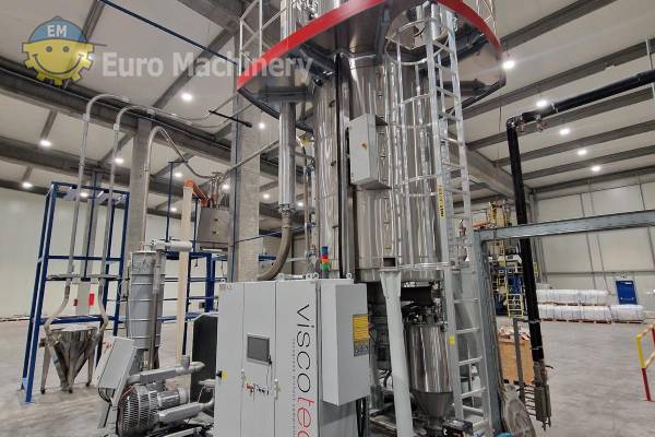 Dekontaminering og tørring af PET-flager fra VISCOTEC til genbrug af PET. Genbrugsudstyr, der kan behandle PET PCR-flasker i flager. Mærke og model: VISCOTEC DYNAVAC deCON50 Materiale, der kan bearbejdes: PET PCR-flaskeflager Anvendelsesområder: Genbrug af PET Fremgangsmåde: PET-flager forvarmes og føres under vakuum ind i reaktorkarrene. Med DYNAVAC-systemet sænkes kogetemperaturerne for det iboende vand og forurenende stoffer betydeligt, hvilket fører til en fremragende tørrings- og dekontamineringsydelse ved lavere temperaturer og tid end normalt påkrævet. Det specialdesignede udløb fra deCON50 fører til en ægte First In First Out af hver enkelt flage, hvilket garanterer en kontinuerlig behandling, før flagen forlader reaktoren via en vakuumsluse til næste procestrin. Fordele:- Dekontaminering af PCR-flakser i henhold til EFSA og FDA