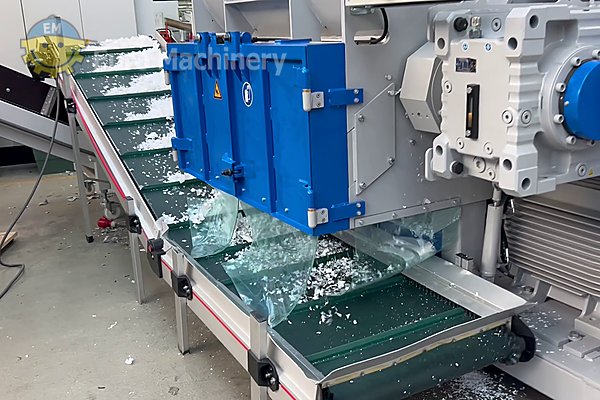 Professionel shredder med én aksel, der leverer en kapacitet på 800-1000 kg/t med 102 præcisionsrotorknive, ideel til genbrug af PE-film og materialereduktion. Det komplette system omfatter påfyldningstransportør, metaldetektor og afgangstransportør til nøglefærdig produktionsintegration.